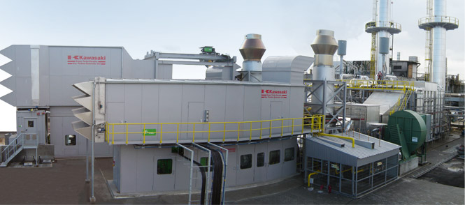 EDP decided for KAWASAKI Gas Turbine Generator Sets GPB180D and GPB80D upstream each of them one boiler with fresh air firing to secure the generation of 25 MWe, 34 t/h @ 22 bar, 304°C and 23 t/h @ 7,5 bar, 205°C for their electrical requirements and for the thermal requirements of FISIPE.