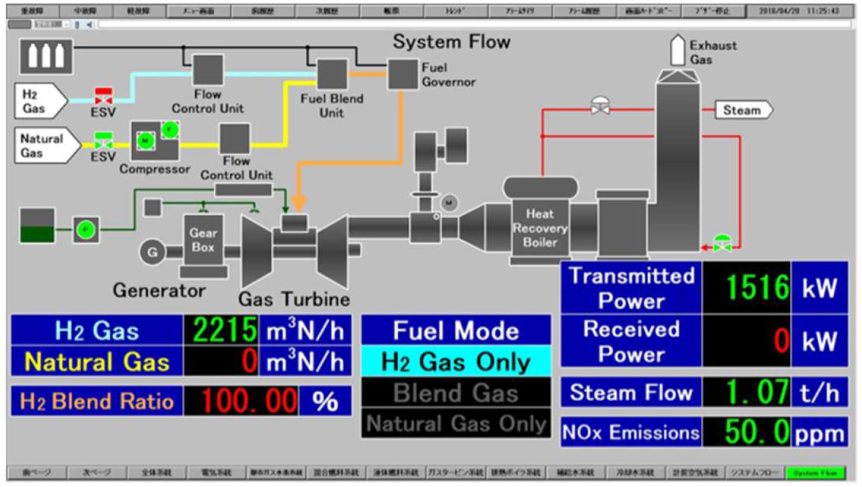 Die erste Gasturbine mit einer Diffusions-Brennkammer wurde im Rahmen des Forschungsvorhabens „Development of smart community technology by Utilization of Hydrogen CGS (Co-Generation System)” in Kobe installiert. Dieses Forschungsvorhaben wurde unterstützt durch die japanische Organisation NEDO (New Energy and Industrial Technology Development Organization). Die erfolgreiche Inbetriebnahme der weltweit ersten Demonstrationsanlage mit einer Wasserstoff-Gasturbine fand am 19. April 2018 in Kobe statt, siehe Abbildung 2.