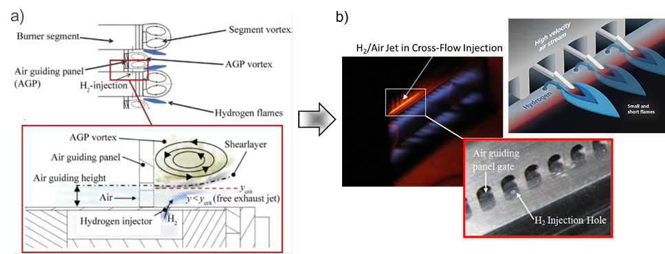 In Verbindung mit der Nutzung erneuerbarer Energiequellen stellt Wasserstoff einen alternativen Gasturbinenbrennstoff in der künftigen emissionsarmen Stromerzeugung dar. Aufgrund des großen Unterschieds der physikalischen Eigenschaften von Wasserstoff im Vergleich zu anderen Brennstoffen wie Erdgas können bereits etablierte Dry Low Emission (DLE) Gasturbinenverbrennungssysteme nicht unmittelbar für die Wasserstoffverbrennung eingesetzt werden. Daher ist die Entwicklung von DLE Wasserstoffverbrennungstechnologien eine wesentliche Herausforderung für die Zukunft von mit Wasserstoff betriebenen Gasturbinen.